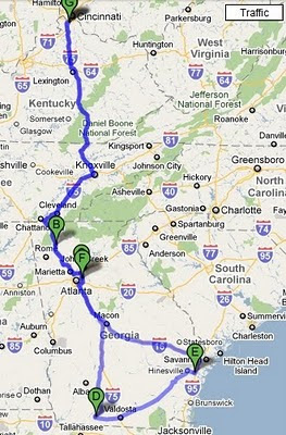 Tomorrow morning we’ll head out early, put in at least six hours on the road, then make a layover in Calhoun to see Mimi and Aunt Andrea (who’s been stuck at college the last few times we’ve blown through town) for a brief pit stop. Then we’ll buckle back up and drive another two hours to my brother’s house. Unna Jay-jase and Shay-ray (in Susannah-speak) have graciously opened their home to us for an overnight – and we’re really excited about seeing them & Dylan again.