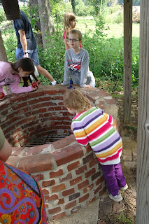 After all the kids had climbed trees or clambered underneath for their pair of apples, we took another little hike through the orchards, past some old barns, to the wishing well.