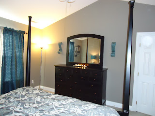 Picture frames on the high chest are a mixture of Pier 1 (with teal accents) and silver frames we already owned.